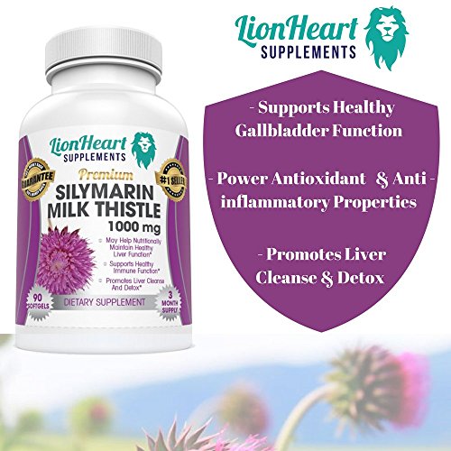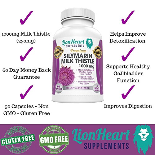 -. Binding : Health and Beauty -. Brand : LionHeart Supplements -. EAN : 0700461509356 -. Feature : BEST LIVER CLEANSE & DETOX SUPPLEMENTS - This one is 100% Pure with no GMO. We promise you get the whole 1000mg of Milk Thistle in one softgel. Other brands use fillers and other ingredients to stuff there capsules. All our supplements are made in the USA under strict practise and are GMP and FDA approved facilities. / RECOMMENDED DETOX ▫ CLEANSE ▫ MAINTAIN - Milk Thistle has demonstrated Liver Protecting benefits in Human Studies. You will be sure to be selecting the right Milk Thistle when you buy from us. We promise you will get a highly concentrated, effective extract of milk thistle in every bottle. / OUR SYNERGISTIC COMPLEX - Creation never ceases to amaze us. LionHeart Supplement has harnessed the natural properties of the Milk Thistle plant and offers the perfect amount of Silymarin in each bottle. / POWERFUL ANTIOXIDANT BENEFITS - Milk Thistle is a naturally powerful antioxidant that can help the body protect itself from free radical damage to healthy cells and tissues. Similar to the benefits of other naturally-occuring antioxidants (such as resveratrol found in the skins of grapes), milk thistle may also offer anti-aging benefits to the skin and other organs (specifically the kidneys and gall bladder). / ✋ 110% GUARANTEED TO WORK WITHIN 60 MINUTES OF THE FIRST DOSE - We are so confident our Milk Thistle will work for you that we will give you a full refund with a $5.00 gift card to spend on a competitor's product if your liver enzyme levels don't improve on your next doctor's visit. This is backed with a 365 empty bottle money back guarantee. -. IsAdultProduct : 0 -. Label : LionHeart Supplements -. LegalDisclaimer : *These statements have not been evaluated by the Food and Drug Administration. This product is not intended to diagnose, treat, cure or prevent any disease -. Manufacturer : LionHeart Supplements -. PackageQuantity : 100 -. ProductGroup : Health and Beauty -. ProductTypeName : HEALTH_PERSONAL_CARE -. Publisher : LionHeart Supplements -. Size : 90 softgels -. Studio : LionHeart Supplements -. Title : MILK THISTLE - FAST RESULTS - Liver Cleanse & Detox Support Supplement - Silymarin 1000mg Soft Gels - 4x Concentrated Extract - Detoxifier & Regenerator - Money Back Guarantee -. UPC : 700461509356