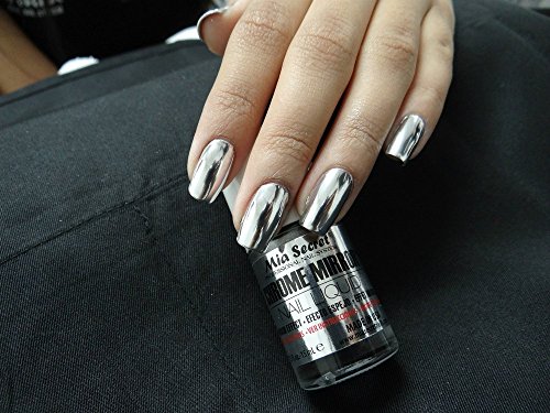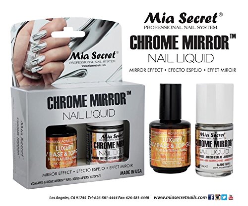 CHROME MIRROR is a nail liquid. It's not a nail polish. Apply Mia Secret Luxury UV base and top gel for long-lasting. If you don't apply base coat,it won't have a mirror effect. If you don't seal the nail whit top coat,the mirror effect will last 2 hour only. 1. Prep the nail leaving a well-deaned surface using Mia Secret 180 grit Speedy Zebra or Sponge 220/280 file.Apply Mia Secret nail prep to dehydrate the nail and Xtra bond primer to improve the product adhesion. 2. Apply a base coat of Mia secret luxury UV properly over nail plate, walls and tip, to allow the mirror effect shine its best. cure for 2 minutes and wipe off sticky residues with Gel Cleanser. 3. apply a coat of Chrome Mirror and let it dry until you see the mirror effect. Notice that this is a fast-drying liquid. 4. Seal the mirror effect applying Mia Secret Luxury UV top coat properly over nail plate, sidewalls and tip. cure for 2 minutes, and wipe off sticky residues with Mia Secret Gel Cleanser. FOR ARTIFICIAL NAILS, ALWAYS APPLY MIA SECRET LUXURY UV AS BASE AND TOP GEL.Feature