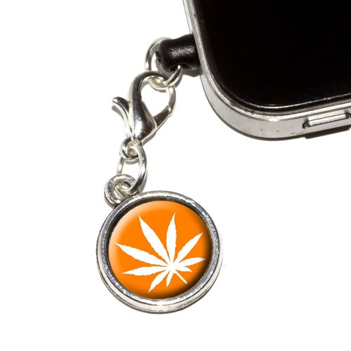 Graphics and More Marijuana Leaf - Orange Anti-Dust Plug Universal Fit 3.5mm Earphone Headset Jack Charm for Mobile Phones - 1 Pack - Non-Retail Packaging - Antiqued Silver