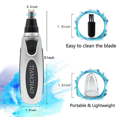 CLEAN & SPACE-SAVING:The nose hair trimmer is washable.The whole body and stainless steel blades can be safely rinsed with water, so you can use it in shower freely