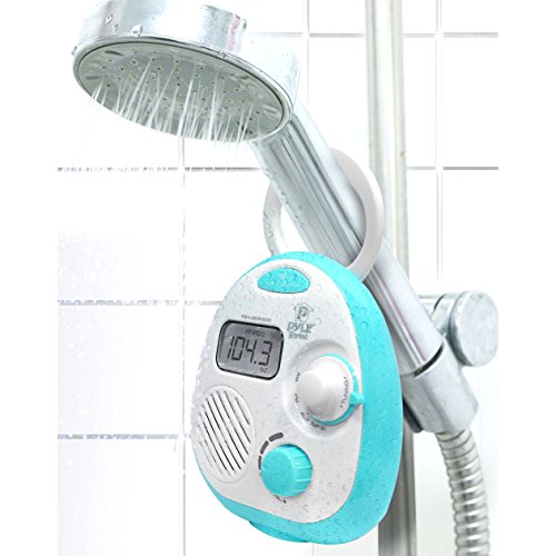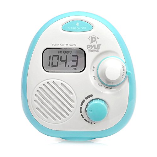 Pyle PSR14 Splash-Proof Water Resistant Mini Digital AM/FM Radio Alarm Clock with LCD Display and 3.5mm AUX Input, Digital