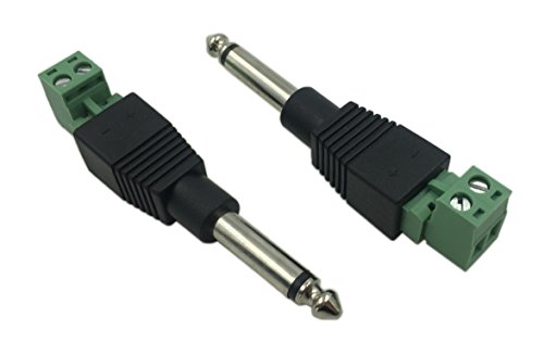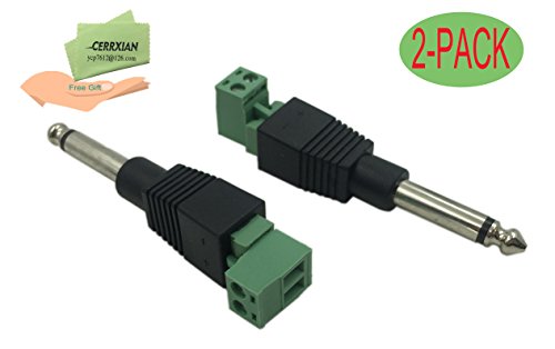 Cerrxian 6.35mm Stereo Audio Mono Male to 90 Degree 2 Screw Terminal Female Microphone Balum Converter Adapter (2-Pack)