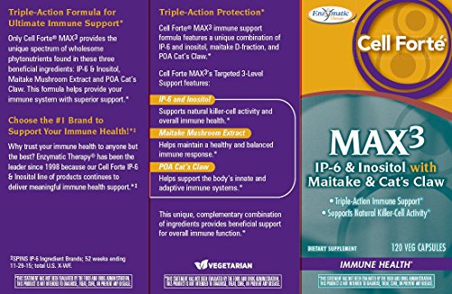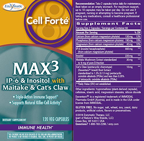 Cell Forte MAX3 immune support formula features a unique combination of IP-6 and inositol, mistake D-fraction, and POA Cat's Claw.