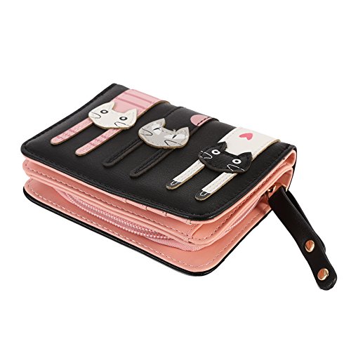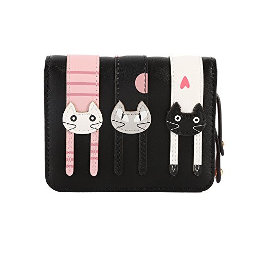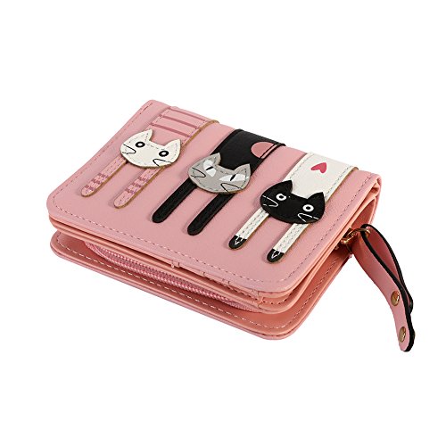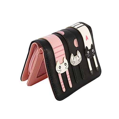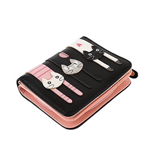 Eurlove Lady Girl's Leather Mini Wallet Cute Cat Pattern Credit Cards Cash Coin Holder
