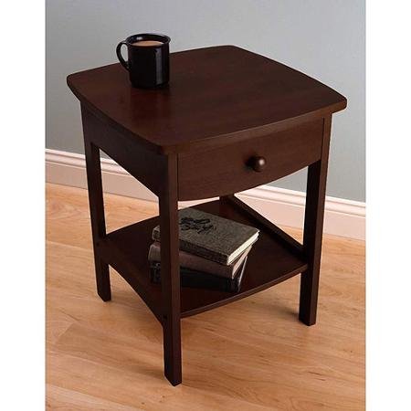 Product Description Simple and elegant, this Winsome Wood Night Stand blends well with any bedroom decor. A great addition for your bedroom, this night stand also expands the storage space. It has a spacious pull-out drawer at the top and a shelf at the bottom to help you storing all your essentials. The comfort grip knob gives easy access to the contents inside. You can place a table lamp, photo frame, or any other decorative item on top of this night stand to make it even more impressive. Constructed from solid beech wood, this end table with drawer will certainly serve its purpose for many years. This modern curved wood accent table or night stand fits anywhere in your home right from living room to your bedroom. You can assemble this end table in a few minutes with the help of minimal tools. 0