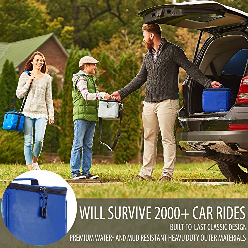 - Each reusable lunch box features a soft carrying handle, adjustable long shoulder strap with a soft pad, a big inside pocket for an ice pack and a zipper pocket for utensils, napkins, and other small stuff