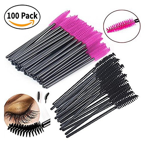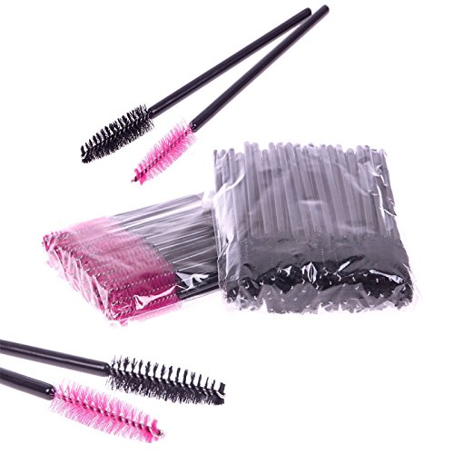 Disposable Eyelash Mascara Wands Brush Set Series By New8Beauty (Pink & Black 100Pcs)