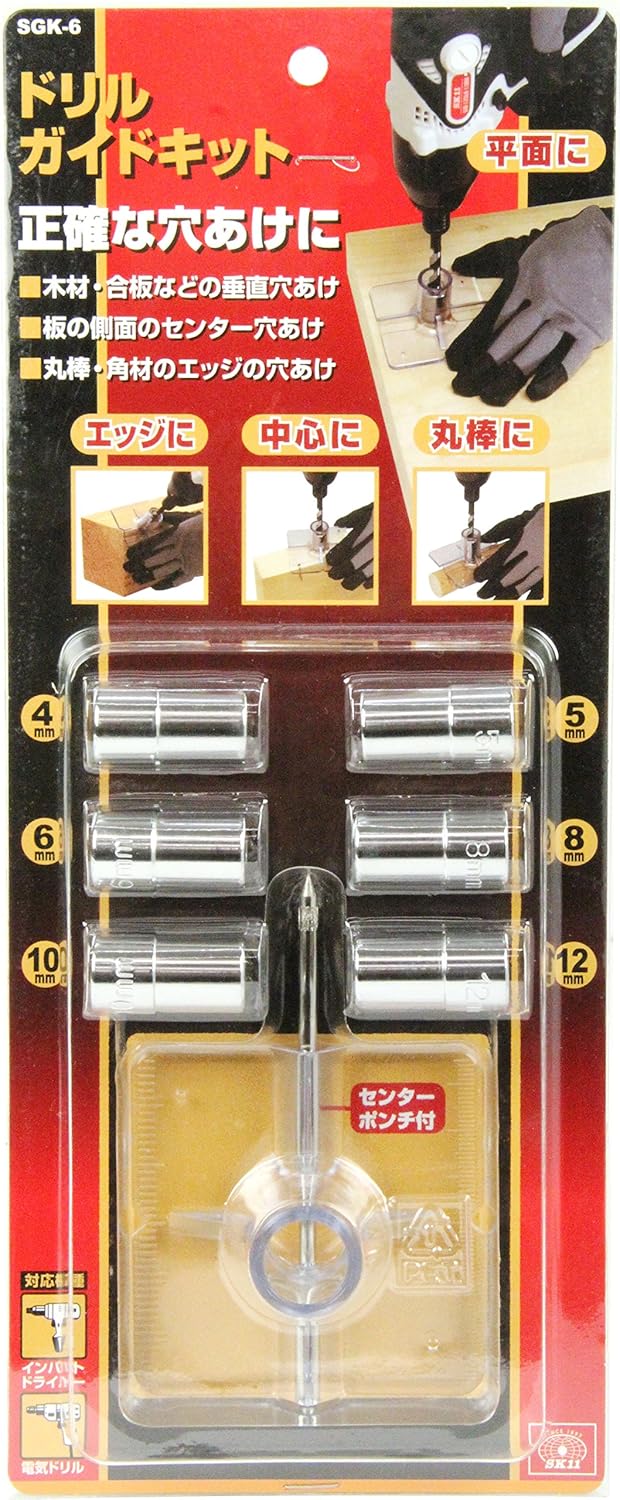 セット内容:ガイドベース・ドリルガイド(4・5・6・8・10・12mm)・センターポンチ(4mm)