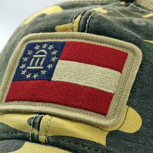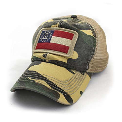 Binding : Apparel Product Description The Great State of Georgia flag cap! Designed by our staff in New Bern, NC. The Georgia Flag Hat has a Salt-WashTM to create a weathered, heavily sun bleached look. The high thread count embroidered flag patch creates a vintage look. Hat is adjustable with snaps. Mesh is soft and bill has a natural bend. This hat is heavily faded making each hat uniquely different. Our vintage state flag patch trucker hats are not to miss. Only at S.L. Revival Co. 0