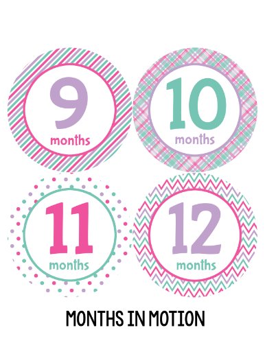 -. Title : Months in Motion 202 Monthly Baby Stickers Baby Girl Months 1-12 Milestone