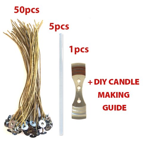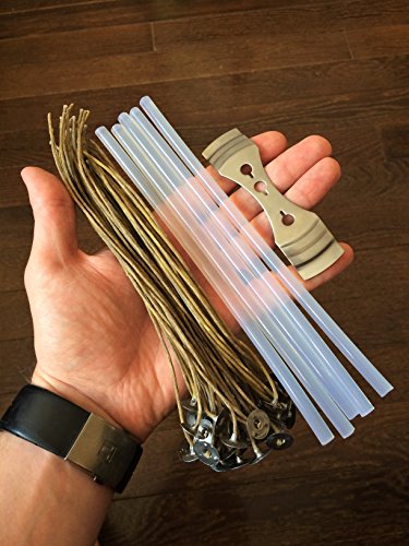 - ✅ 8"; 50 WICKS + 5 HOT MELT GLUE STICKS + 1 METAL CENTERING DEVICE + 2 E-BOOKS INCLUDED!!!; Perfect for 3 1/2" jars - (NO TUNNELING); EXTRA LONG ORGANIC HEMP WICKS: 8" (203mm); 9ply, Dark. Thick Gauge 0.08" (2.0mm); Pre-waxed and pre-tabbed; Base (Tab) Dia:0.51" (12,5mm); Are easy to cut down to the size you want;