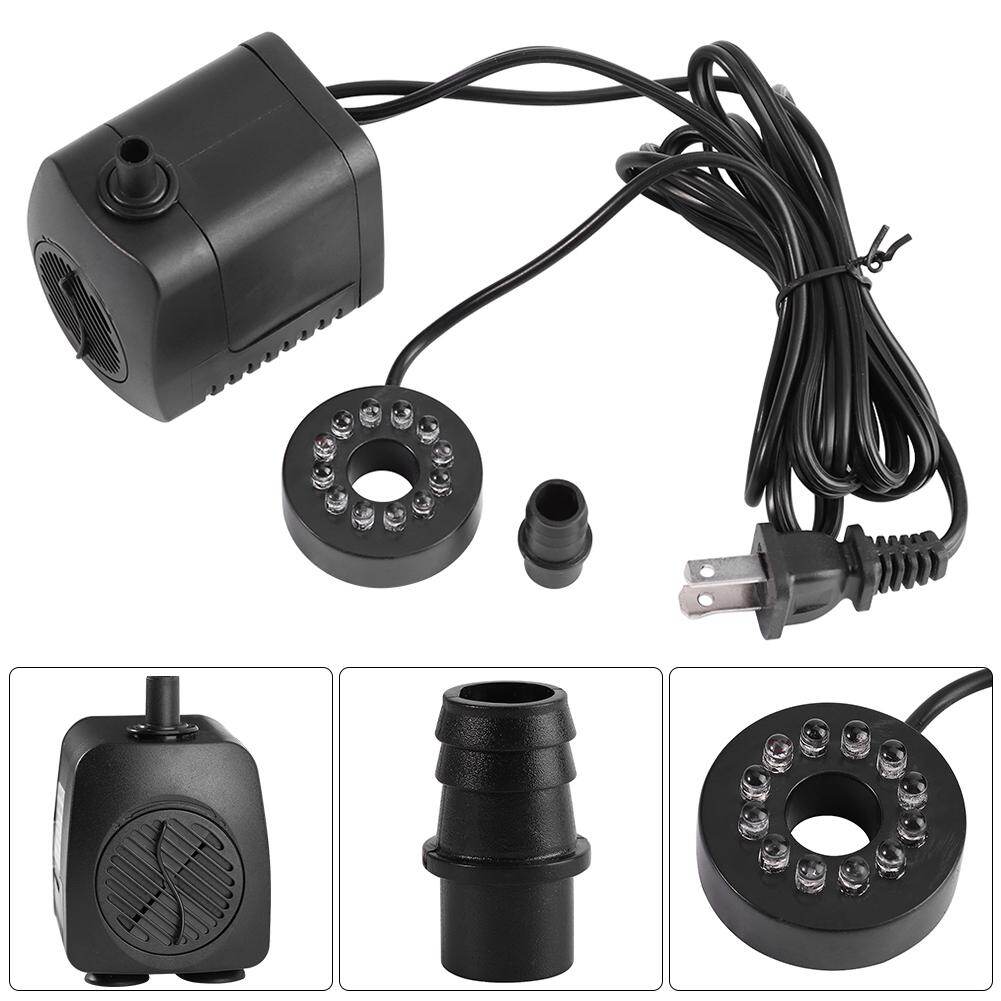 The shell adopts high quality plastic material. It is anti-corrosive, impact-resistant and durable. The axle core and shaft sleeve are made of carbonized stainless steel, which is acid and corrosion resistant. Suitable for fresh-water, salt-water. This submersible water pump is great for aquarium, fountains, spout and hydroponic systems. Comes with 12 colorful led light, perfect decoration in your fountain, pool, garden. With filter cover, which is easy to disassemble, and it is convenient for cleaning the water pump.