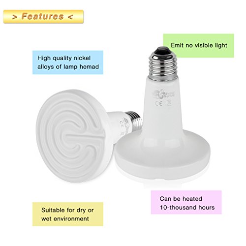 Floureon 110V 75W E27 Heat Lamp Grow Light Ceramic Infrared Electrical Natural Heat Emitter Appliances Lamp Bulb for Heating Chicken Coops Brooding , White