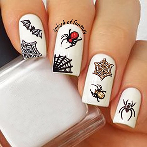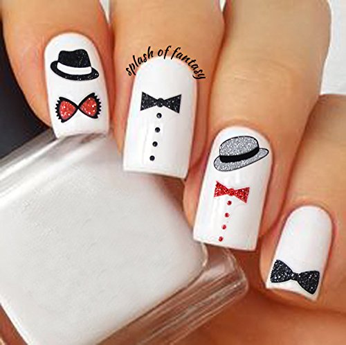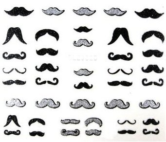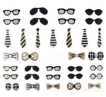 PRETTY NAIL 3D STICKERS - 5 sheets with glittery designs: Spider, Bat, Mustache, Glasses, Ties, etc