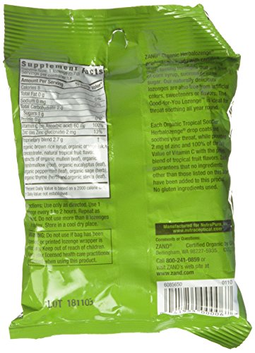 -. Title : Zand Herbalozenge Organic, Tropical, 18 count bags, 12 Count