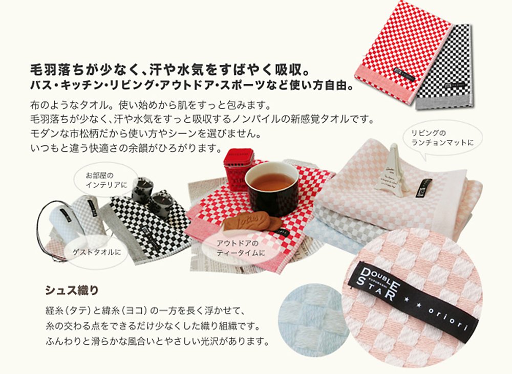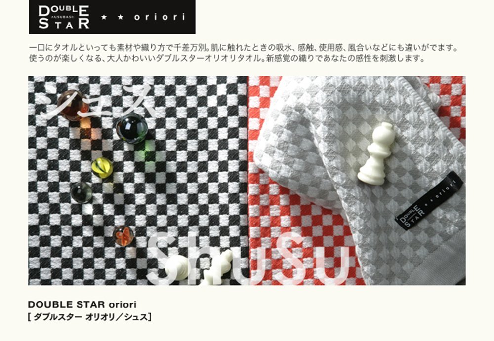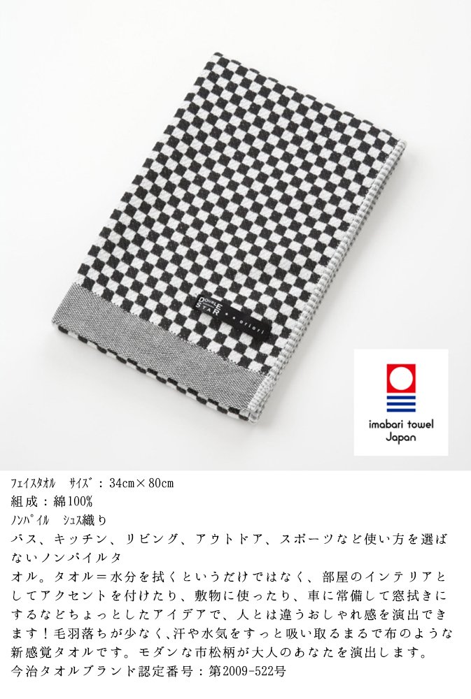 KUSUBASHI MON-ORI DOUBLE STAR oriori [Imabari Towel] Satin Face Towel Black (1-60194-31-BK)