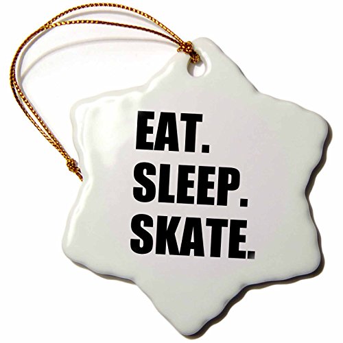 3dRose orn_180440_1 Eat Sleep Skate-Skating Enthusiast-Passionate Skater-Black Text-Snowflake Ornament, Porcelain, 3-Inch