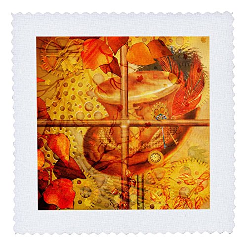 3dRose Digital Art Steampunk Hat, Autumn Leaves and Rustic Window In Fall - Quilt Square, 6 by 6" (qs_218860_2)