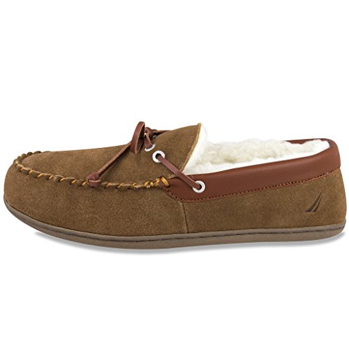 -. Feature : Genuine shearling lined moccasin slipper. / Genuine cow-suede upper material.