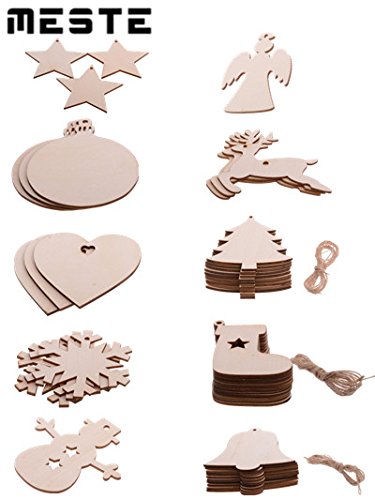these wood pieces in cute Christmas tree patterns are ready to be painted, stained and so on, you can draw patterns on them or write on them as ornaments or as holiday greeting pieces, good as DIY supply