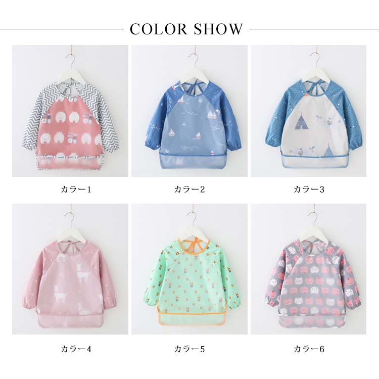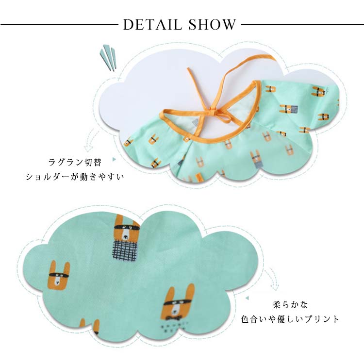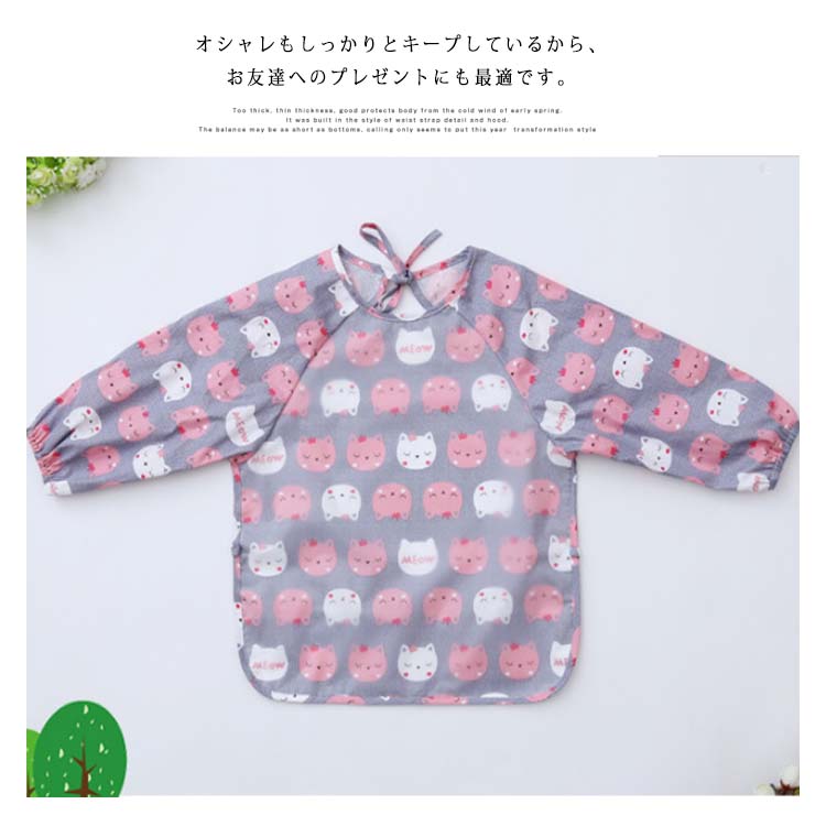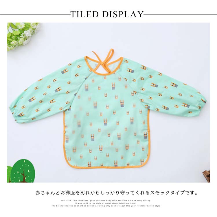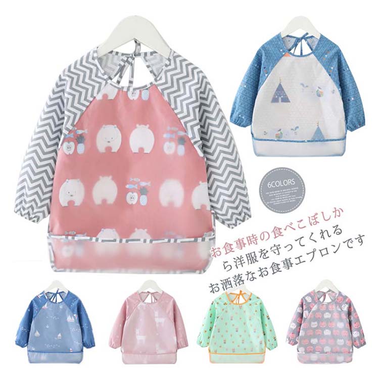 | お食事時の食べこぼしから洋服を守ってくれるお洒落なお食事エプロンです。赤ちゃんとお洋服を汚れからしっかり守ってくれるスモックタイプです。撥水生地で作られているので、水分や汚れに強くて機能性も抜群なのです!!オシャレもしっかりとキープしているから、お友達へのプレゼントにも最適です。 | |