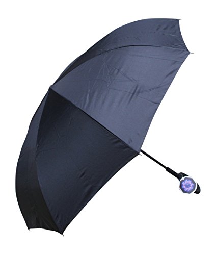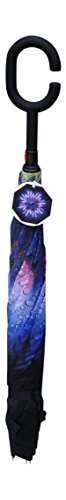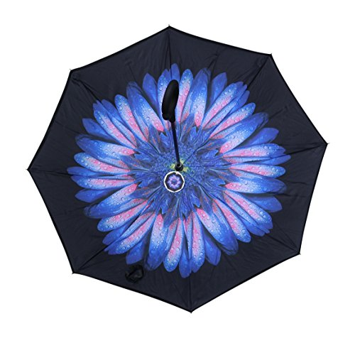 Studio : GiftCraft Publisher : GiftCraft Product Description The umbrella measures 31" long X 2" in diameter when closed. The fabric of the umbrella is made with polyester.The C-shaped hard plastic handle makes it easier to hold onto.The umbrella has a velcro closure. The umbrella has a bright blue flower on the interior of the opened umbrella. 0