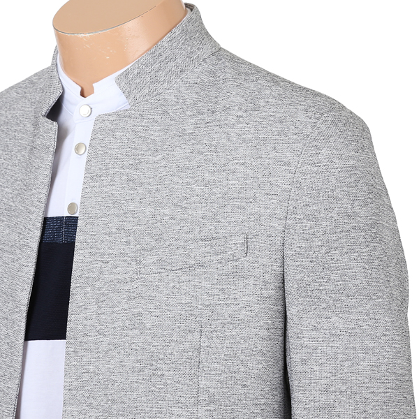 | 폴리 원단을 사용한 스탠 카라 디자인의 자켓입니다. 부드러운 터치감으로 착장감이 우수하며 투 버튼 여밈으로 깔끔한 실루엣을 연출하여 줍니다. 가슴 웰트 포켓과 사이드 플랩으로 간단한 소지품 수납이 용이하며 밑단 사이드 벤트 디테일로 활동성을 높였습니다.