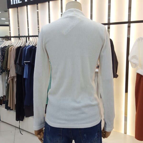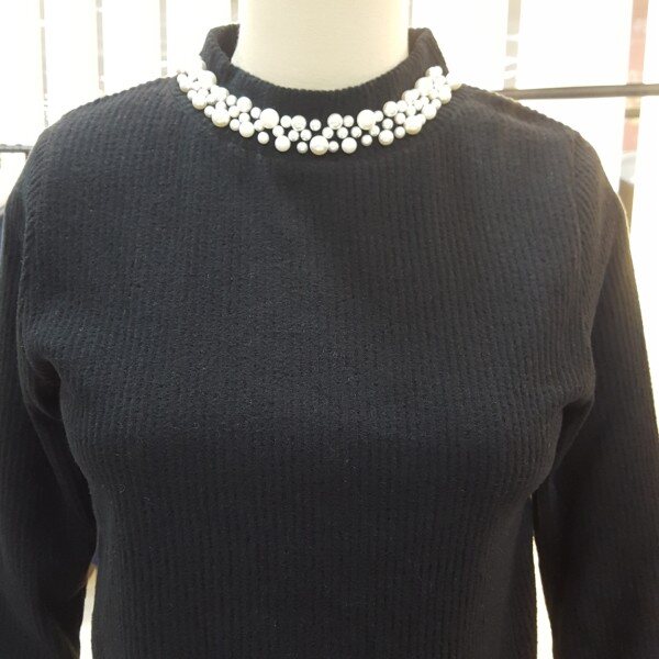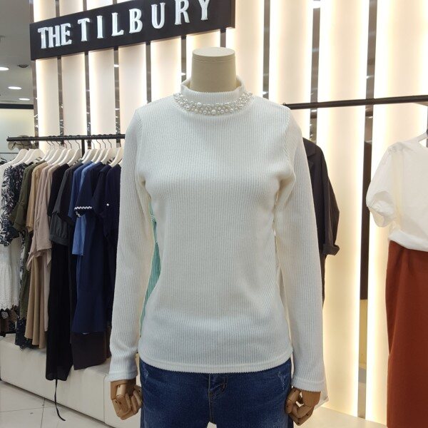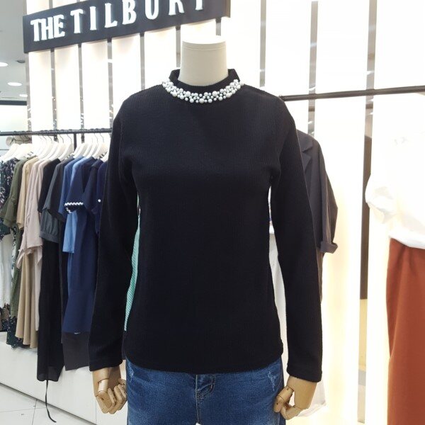 소프트한 니트느낌을 주는 티셔츠로 반넥라인에 블링블링한 진주장식이 여성스러우며허리를 충분히 덮는 길이감이 편안하며 잔골짜임에 부드럽고 포근한 이너웨어로 활용하기 최고의제품입니다.