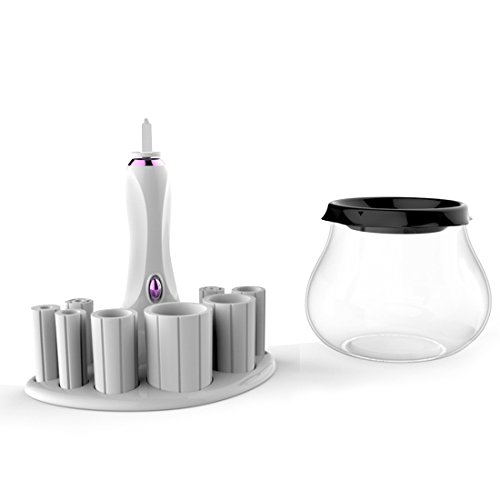 Makeup Brush Cleaner, XFJ TECH Electric Cosmetic Brushes Cleaner and Dryer with 8 Silicone Collars, Deeply and Quickly Washing Tool for All Size Brushes(White)
