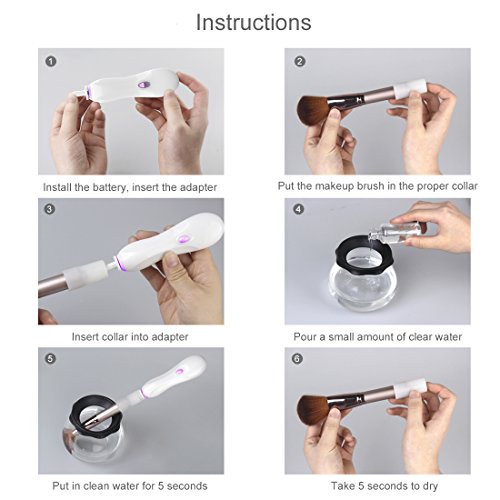 - EASY TO USE - Just 4 steps: 1. assemble the spinner with makeup brush; 2. clean water with brush neutral detergent; 3. spin and rinse about 30s; 4. clean water wash again then spin to dry it, Deep and quick to clean.