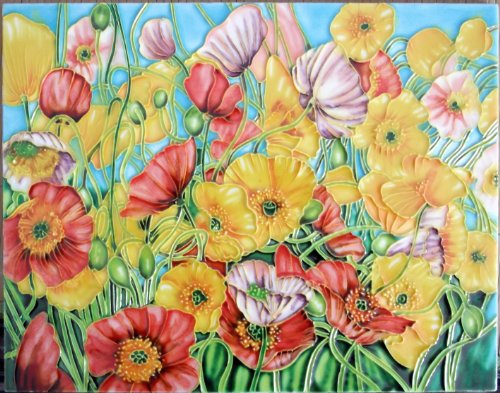 Continental Art Center HD 053 Poppy Flowers Art Tile, 11 by 14-Inch