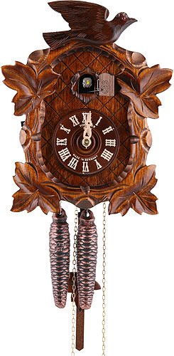Studio : Anton Schneider Publisher : Anton Schneider Binding : Kitchen Product Description Colour: Walnut 2 years product warranty The cuckoo calls every half hour once and the number of the hours every full hour. This cuckoo clock has an exclusive life-like wooden handpainted cuckoo. With certificate of authenticity from the Black Forest Clock Association (VdS). It has a mechanical extreme long-life rack strike movement. It allows turning the hands left and right without endangering the mechanics of the movement. The 1 day running time movement need to be wind up every day, that means you pull on the chains until the weights are up. The size refers only to the clock, without pendulum and weights. 0