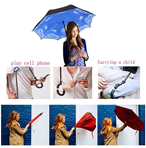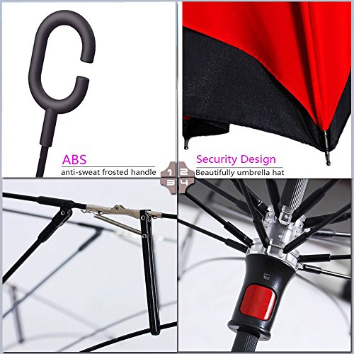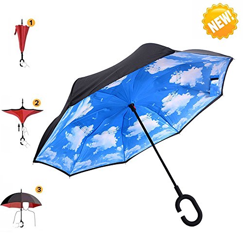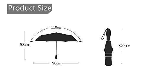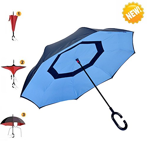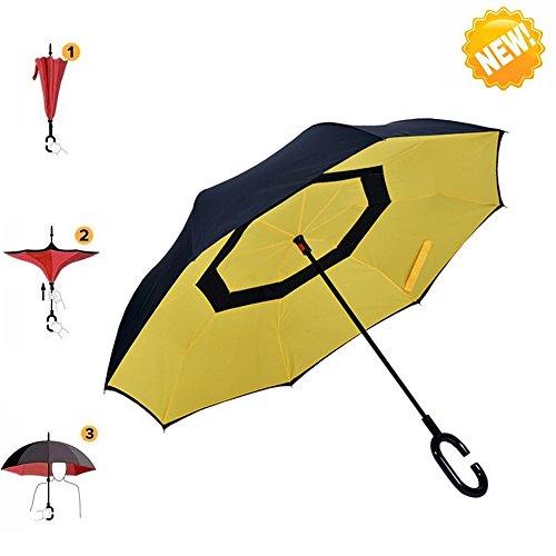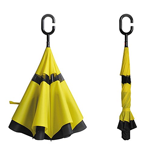 Innovative inside out design It adds a nice twist to our classic umbrella by turning inside-out when you're not using it. In this way, the dry inner side of the umbrella comes on the outside, keeping the wet side away to keep you dry when you make it in from the rain. Easy to operate and safe to use With a simple click of the embedded button, you can open and close the umbrella in confined spaces when entering or exiting a building or car and it's less awkward and more safer to open and close when in crowds, since the danger to poke in people's eyes has been removed by the design. Convenient to place and drip free It can stand up on its own, ideal for when you have nowhere to prop your umbrella up against. It will also keep the wet part of the umbrella inside once you've closed it, so things don't get dripped on when you put it away after coming indoors. Durably windproof The straight umbrella easily slices through all winds. Due to its aerodynamic design, the umbrella always finds the most comfortable position in the wind which makes it exceptionally pleasant to use, even in strong gales. If the canopy flips, it can be rectified at the push of a button. Specification: Model: New Conversion Inverted Umbrella for car Cloth Material: double layers high-density water repellent fabric Rib Material: carbon fiber high hardness skeleton Self Standing design: Can stand up on its own Umbrella Handle: Rubberized plastic matte painting handle with C shaped Be suitable for 1~2 person Weight: 560G Size: 23in * 8 panels Package Size: 39.3 * 5.9 * 6.2 inch Package Contents: 1 * Creative inverted umbrella with C-shaped Handle 0 |