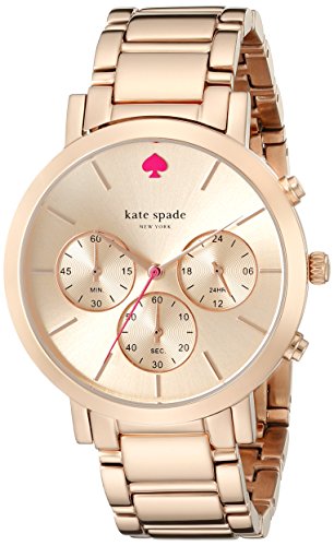 Rose gold-tone bracelet watch featuring sunray dial with three textured subdials and pink spade logo at 12 o^^clock