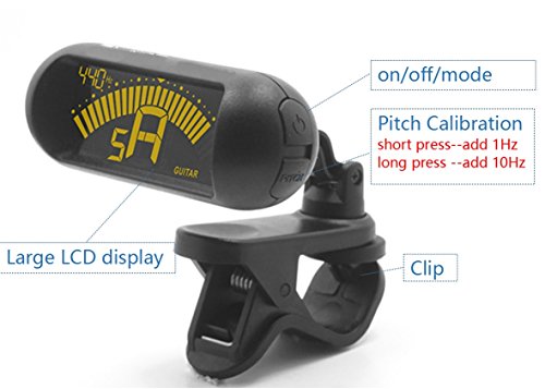 Luvay Large Display Pitch Calibration Clip-on Tuner for Guitar, Bass, Ukulele, Violin, Chromatic