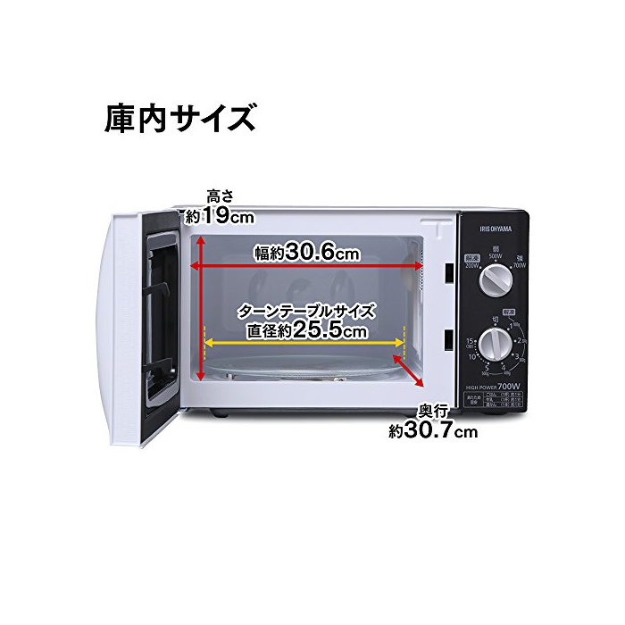 고내사이즈(cm):폭약30.6×(길이)깊이약30.7×높이 약19 ●턴 테이블 사이즈(cm):직경 약25.5 ●타이머:15분