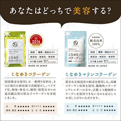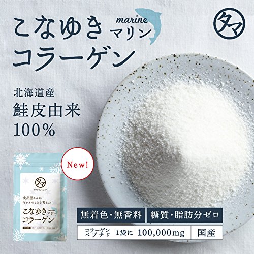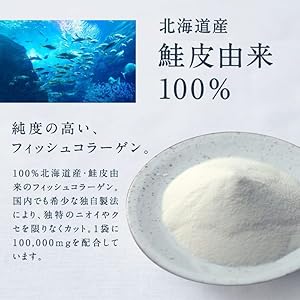 こなゆきマリンコラーゲンは、寒流系の魚である鮭の皮を原料に使用しています。海洋性原料由来のコラーゲンは、水産原料の天然素材です。