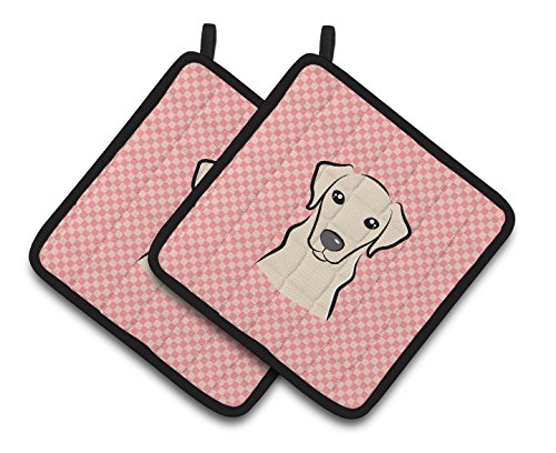 Caroline's Treasures Checkerboard Pink Yellow Labrador Pair of Pot Holders BB1222PTHD, 7.5HX7.5W, Multicolor