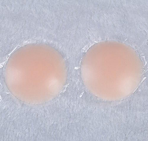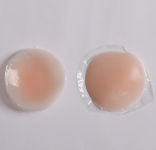 Flyusa 2 Pairs Natural Round Silicone Reusable Adhesive Nipple Cover Breast Pads Gel Petals Pasties Bra Pads for Women Ladies