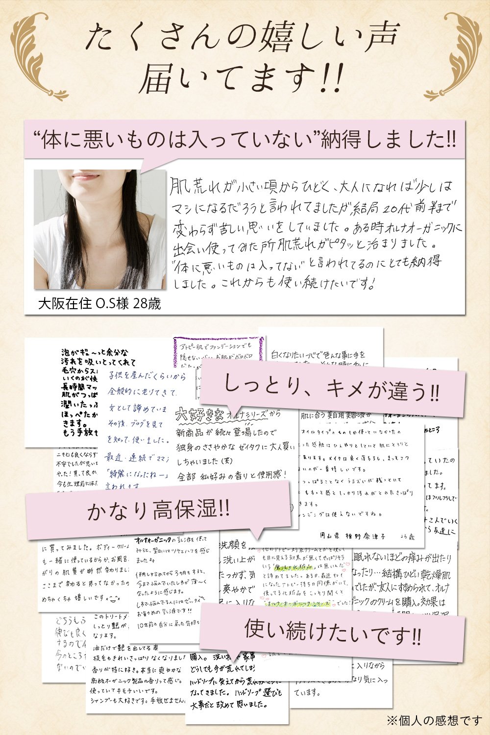 Based on the premise that you can not put bad things in your body, carefully select from among 200 types of organic ingredients / beauty ingredients of really good "natural" sticking to "9 kinds of non-additive" one by one "22 kinds