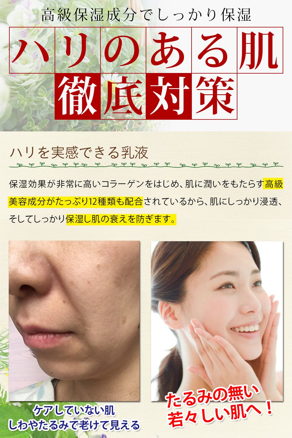 Twelve kinds of beauty essence ingredients moisturize your skin and give it moisture and protect from drying and give moisture.