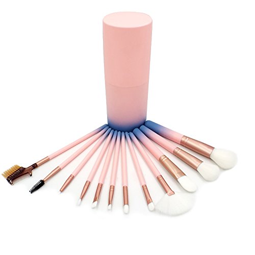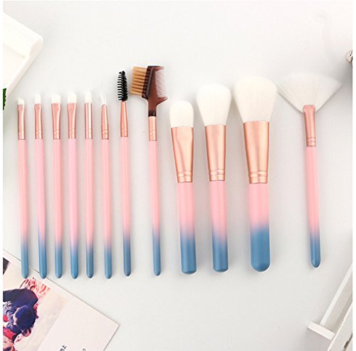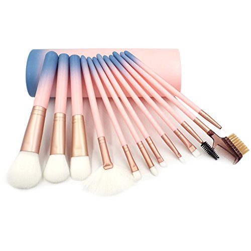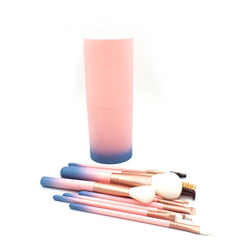 ValleyComfy Gradient Color 12 pcs Makeup Brush Set with Makeup Brushes Holder Foundation Brush Powder Brush for Blush Eyeshadow Eyelash Eyebrow...
