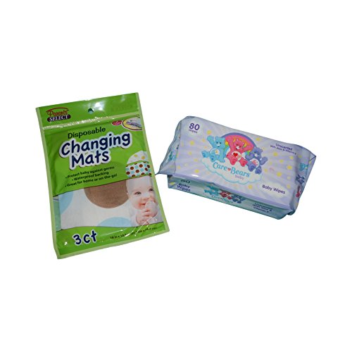Baby Travel Bundle Includes: 1 travel pack of Care Bears Baby Wipes and 1 travel pack of disposable baby changing mats.