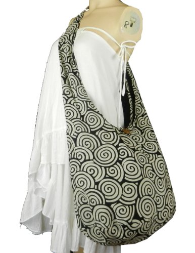 Product Description A universal tribal swirl pattern is featured in this hobo carryall made of durable but lightweight cotton fabric. Tossed over the shoulder for all day comfort and security. Zippered compartment and a zippered inside pocket then reinforced in the base of the bag. Size: Height 13" Length: 20" Depth: 10" Drop: 20" shoulder strap (40" end to end) 0