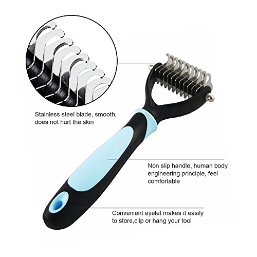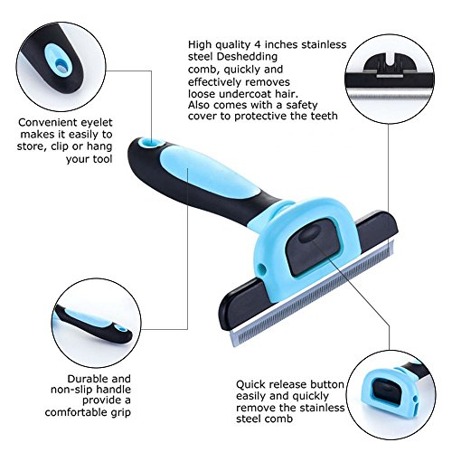 1. 2 in 1:the Deshedding Brush: Reduces Shedding,the Dematting Comb: remove undercoats and loose hair,Don't worry about your pet's hair or fur all over your house, furniture or car