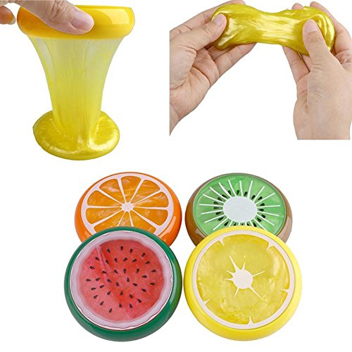 -. Feature : The latest toys, slippery soft, your child will love, very flexible, with your own way to play, but please do not eat / Decompression toys: exquisite workmanship, elastic full, comfortable feeling, you can repeatedly press, adjust the mood, the release of your stress and anxiety / The material meets safety standards and is suitable for play in all ages, which is beneficial to the development of children's intelligence, but it also helps adults to reduce stress and can prevent dementia to a certain extent / Size: 3.15*3.15*0.8 inch / Product Packaging: 6PC crystal mud fruit putty toys for kids
