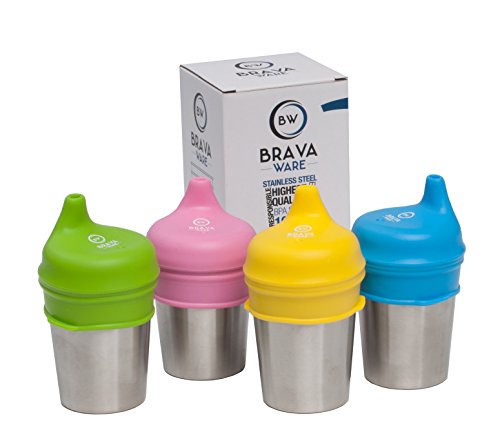 -. Title : BravaWare Stainless Steel Cups and Silicone Sippy Lids for Kids Toddlers Babies BUNDLE: 4-8oz Cups and 4 Sippy Lids - BPA free Sippy Cup Set with Safe Rolled Edges
