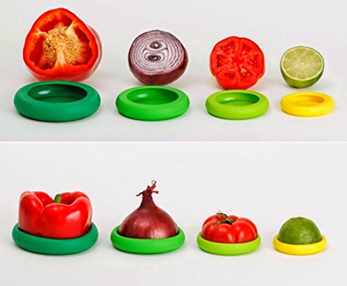 EverFresh FoodCaps Silicone Food Savers Fruit and Vegetable Storage Containers Professional Grade Set of 4 BPA Free Black or Citrus Colors Citrus