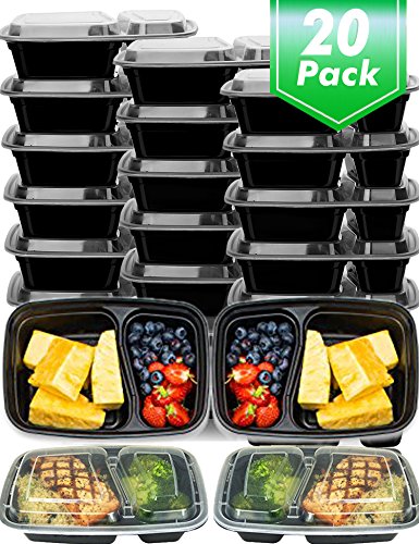 Meal Prep Containers: 2 Compartments; 20 Pack; 20 Black Lids ¡ï This divided meal prep containers designed with 20 rectangular Lids, keep your food seprate and make your day contained and refresh! ¡ï Resuable