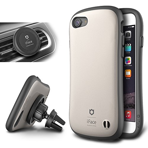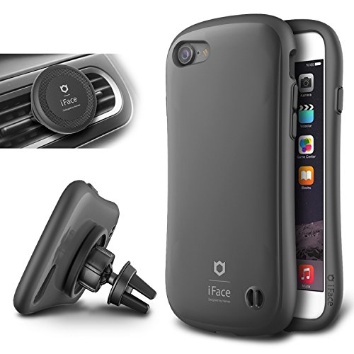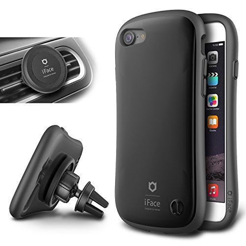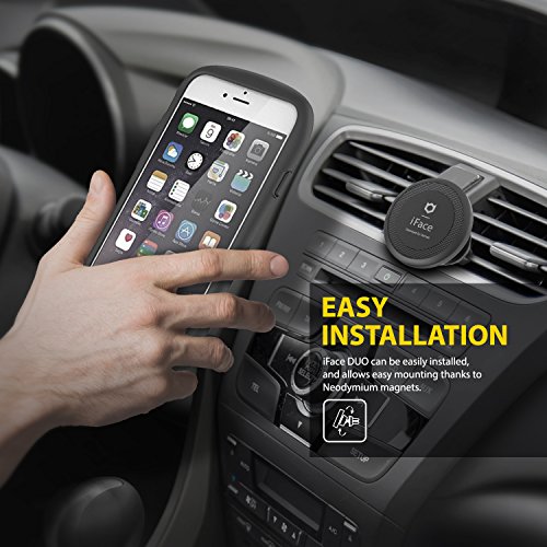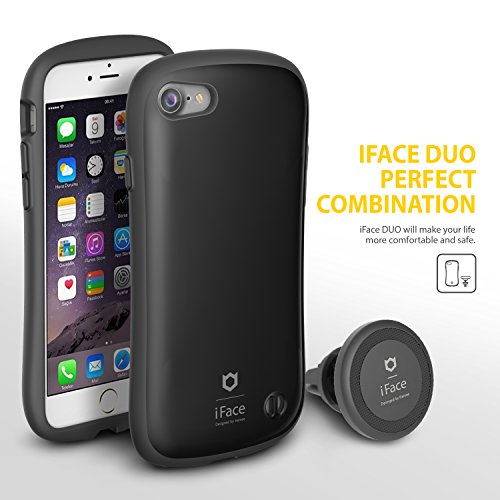 iFace Duo Series iPhone 7 Hard Case and Car Air Vent Mount Holder Complete 2 in 1 Package: The Duo slim Armor case combines protection, functionality and convenience into a minimalistic design that matches the sleekness of your phone. A dual layer composition maximizes the protective qualities of hard and soft materials, resulting in military-grade, shock absorbing drop proof protection. Built in to the hard cover is a sturdy metal plate that conveniently and wirelessly attaches your smartphone to the extra strong Quad Neodymium magnet core of the included iFace Duo Car Mount. This extremely tough holder can be easily mounted on top of any standard vehicle air conditioning vent slot, and is fully adjustable so you always get the perfect angle. Together, the iFace Duo Series case and holder create an unparalleled, all around 360 degree protective barrier for your phone.